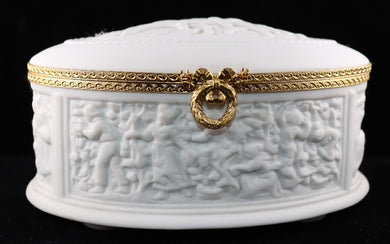 SKU# 1001M "Rome" Large oval hinged box - Biscuit Relief