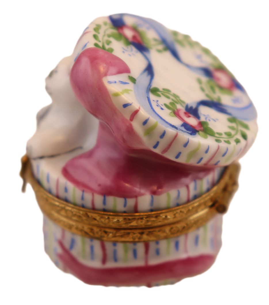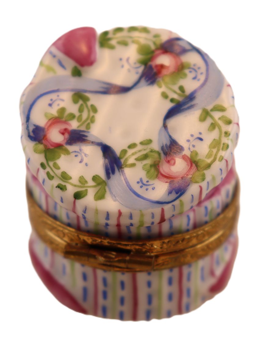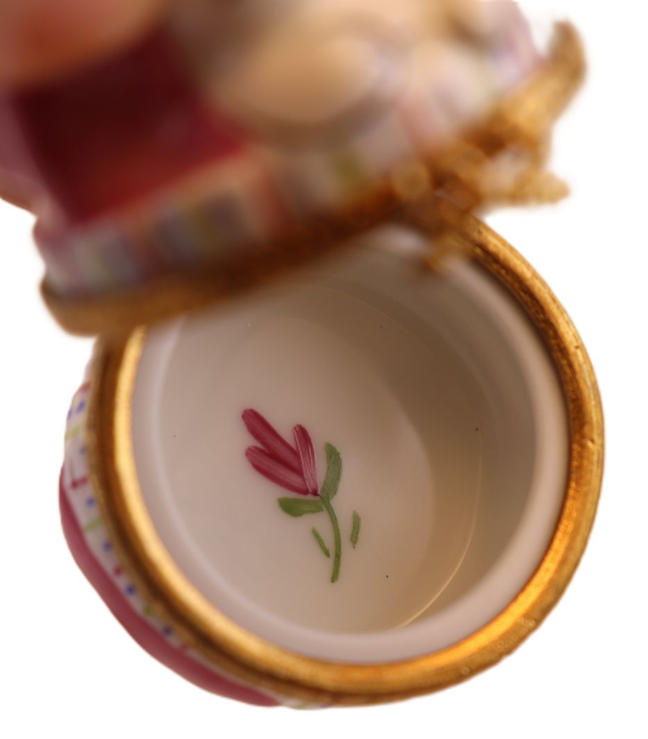 Limoges-Sammelbox – handbemalt und vom Künstler signiert – Hergestellt in Limoges, Frankreich. Diese großflächig handbemalte Limoges-Röhrenbox gehört zu unserer HOME ACCENTS- Kollektion und ist etwa 1,75 x 1,75 Zoll groß.