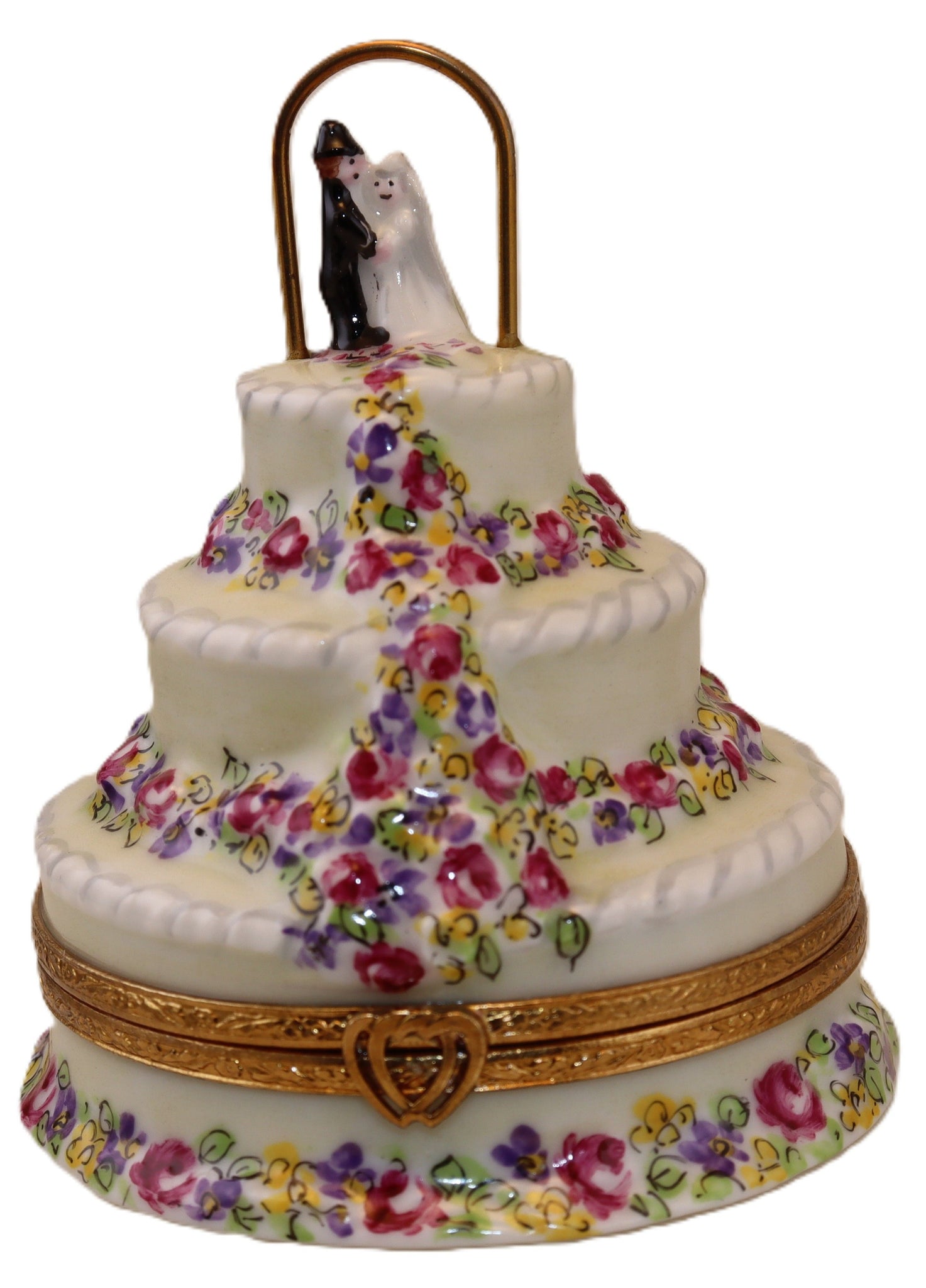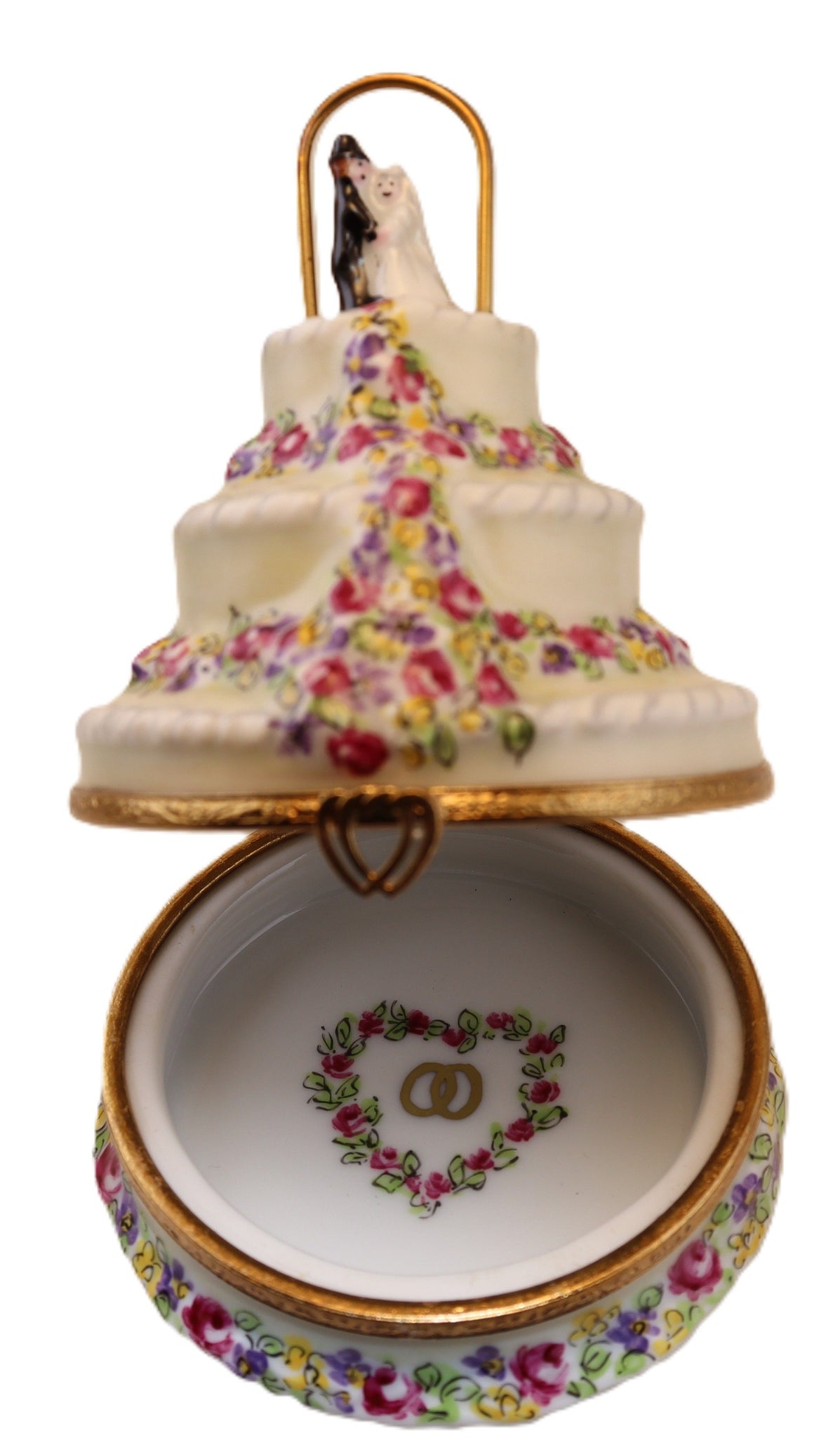 Caja coleccionable de Limoges de Artoria, pintada a mano, numerada y firmada por el artista. Fabricada en Limoges, Francia. Esta auténtica caja de Limoges pintada a mano pertenece a nuestra colección CUMPLEAÑOS y BODAS y mide aproximadamente 8,25 x 6,35 cm. Forma parte de una serie limitada de 1000 piezas. En el interior hay un dibujo de un corazón y una alianza.