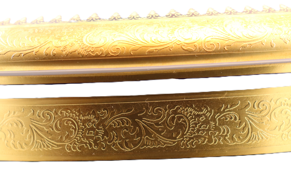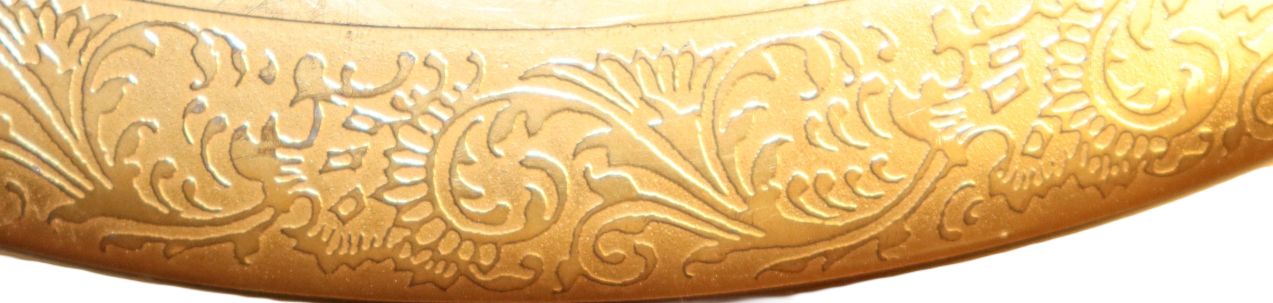 This stunning round Limoges box features a real double 24K gold incrustation and is entirely hand polished with an agate stone, for a spectacular rendering of the gold artwork. In the center is a stylistic flower scheme with exquisite golden gradiences. It belongs to our DECORATIVE collection, and is roughly  9 x 3.5 inches in size. This box is unhinged to allow for the gold expanse on the cover to slightly overlap on the gold expanse on the body creating a very elegant fitting.